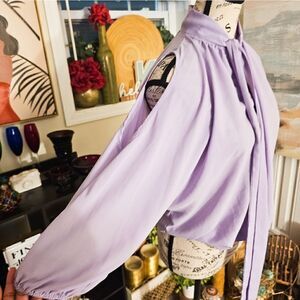 New Ny & Co Dreamy Lilac Bow Neck Detail Stylish Cold Shoulder Blouse.