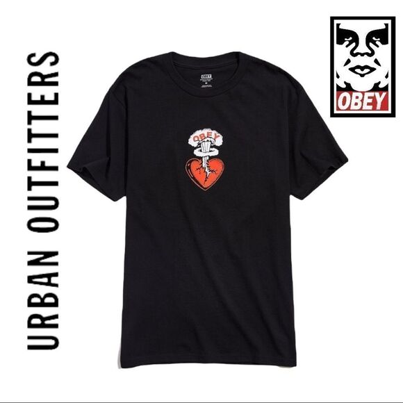New OBEY Broken Heart Black Tee Shirt T-Shirt S XL