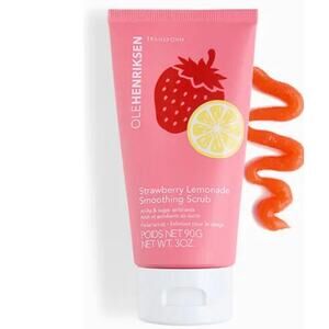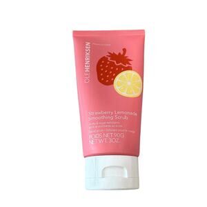New and sealed OleHenriksen Strawberry Lemonade Smoothing Scrub 3 oz. This limited-edition facial scrub combines 10 percent AHAs (glycolic and lactic acid) with ultra-fine sugar and lemon peel powder to gently exfoliate and resurface skin. Holy basil and chamomile extracts help calm and soothe while the strawberry lemonade scent leaves skin feeling refreshed. Use 2 to 3 times a week to reduce visible pores, improve texture, and create a smoother, more even complexion.