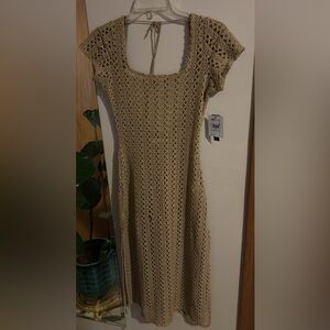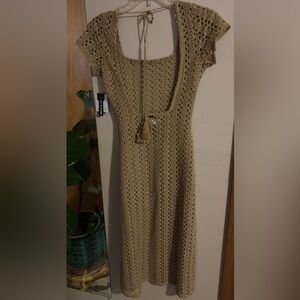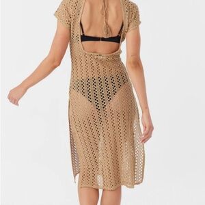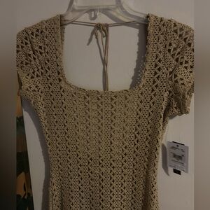 Stay stylish at the beach with this elegant tan crochet swim cover-up. Perfect for adding a touch of sophistication to your swimwear collection. New with tags. Size XS.
