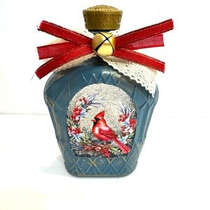 New OOAK Blue Cardinal Decorative Glass Bottle
