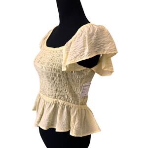 New OPEN EDIT NORDSTROM Women's Yellow Smocked Ruffle Sleeve Top Size S
