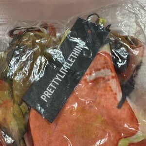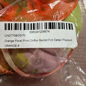 New ORANGE FLORAL PRINT CHIFFON BARDOT FRILL DETAIL ROMPER
