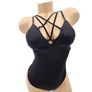New OW Intimates Patricija Bodysuit Womens M/8 Cross Top Tank Built in Bra Black