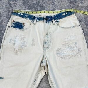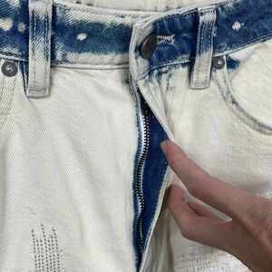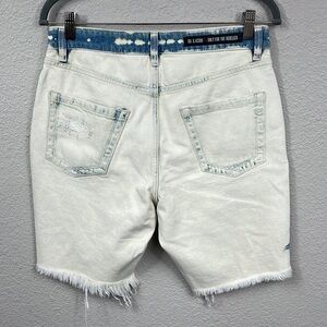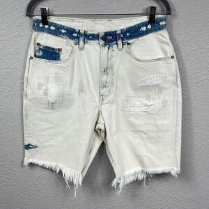 New Oak & Acorn Ninety Three Long Cut Off Frayed Hem Shorts Dipped Indigo 29