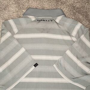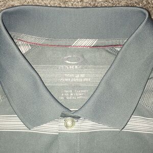 New Oakley Hydrolix Gray White stripe Golf Polo shirt M mens regular fit