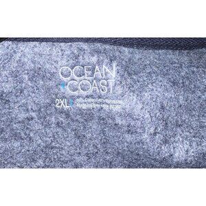 This Ocean & Coast pullover sweatshirt in navy blue is designed for comfort and style. With a practical half-zip closure, it offers ease of wear and adjustability. Crafted in a larger 2XL size, it caters to those seeking a roomy fit without compromising on design.