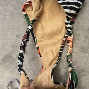 Ochie Black White Tropical Zebra Floral Print Swim Bikini Bottom Size Small