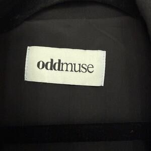 New Odd Muse Ultimate Muse Blazer in Black. Women's S / Small. Features long sleeves with asymmetrical cuff hem, single button closure, notched lapels, longer tunic length. Brand new with tags, but missing belt. Retail $220.