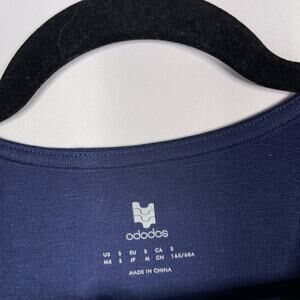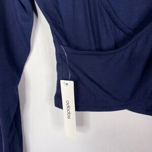 New Ododos Small Navy Blue Cropped Cross Wrap Front Long Sleeve Top Deep V Neck