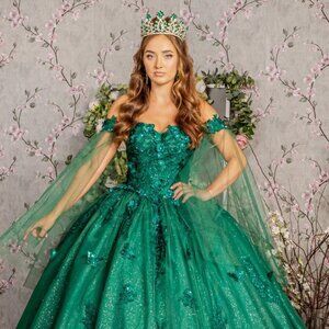 New Off Shoulder Butterfly Embellished Quinceanera Gown w/ Lace Up Back GL3181