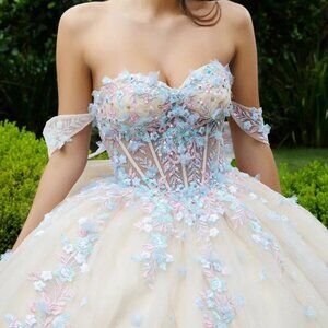 Capture the spotlight in this mesmerizing gown crafted with exquisite Mesh fabric. The elegant and timeless design showcases a flattering sweetheart neckline and an alluring off-shoulder sleeve, perfectly complemented by a graceful ball gown silhouette that exudes sophistication.