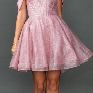 New Off The Shoulder Blush Short Fashion Forward Dress w/ Lace Up Back DQ 3425