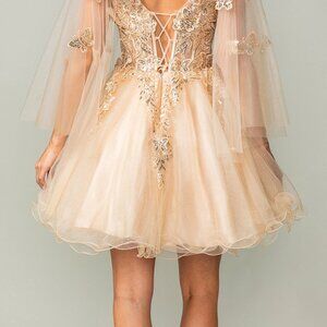 New Off White Mini Bridal Dress w/ Cape Sleeves & Butterfly Applqiue DQ 3393