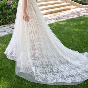 New Off White-Nude Floral Lace Embellished Wedding Tulle Ball Gown CD WL069