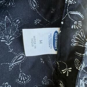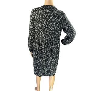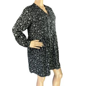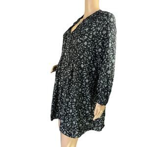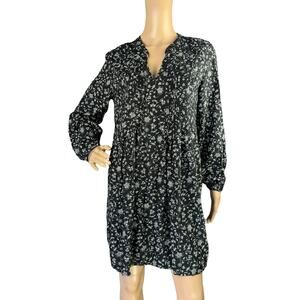 New Old Navy Black Floral V-neck Long Sleeves Pleated Swing Dress Size M
