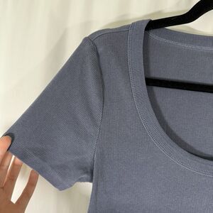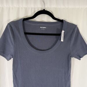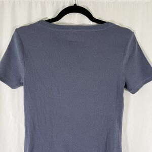 New Old Navy Blouse Women's Medium Blue Ribbed Short Sleeve Round Neck