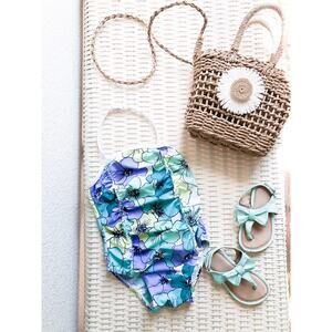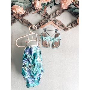 New Old Navy Floral Print Swimsuit & Matching Bow Sandals 12-18mths