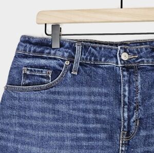 NWOT Old Navy High Waisted Frayed Hem Medium Dark Wash Jean Mini Skirt.