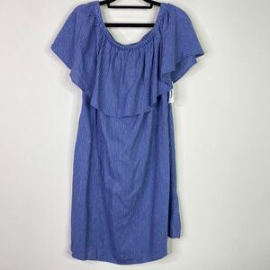 New Old Navy Off the Shoulder Striped Linen Blend Dress Women's Size Medium