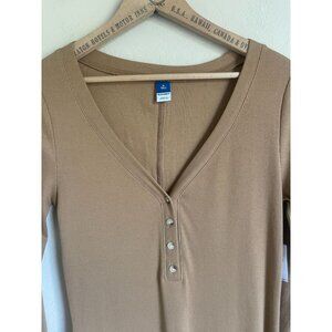 New! Old Navy Ribbed Fitted Henley Midi Dress Tan Medium Tall Long Sleeve V-Neck