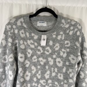 New Old Navy Sweater Women's Medium Grey Cheetah Print Crew Neck