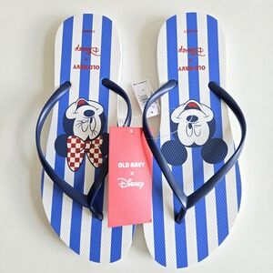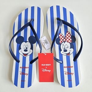 New Old Navy x Disney Mickey & Minnie Striped Print Blue/White Flip Flops Size 8