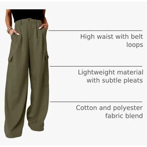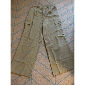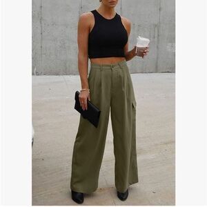 New Olive green High Waisted Wide Leg Cargo Career Pants 4 Pockets 10