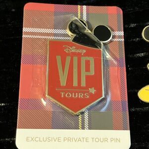 The product is a new on card Disney VIP tours pin featuring Mickey Mouse, a classic character from the Disney franchise. The pin combines a contemporary design with a pre-owned 2007 Classic Mickey pin, making it a unique and desirable collectible for Disney enthusiasts. With its ties to the beloved Mickey Mouse character and Disney brand, this pin is sure to be a prized addition to any Disney pin collection.