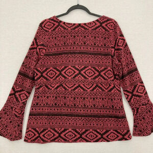 New One World Red Black Southwestern Print Fuzzy Stretch Pullover Top Large