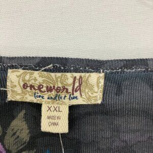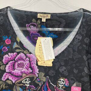 New One World size XXL Black Purple Floral V neck Novelty Skeleton Print Top