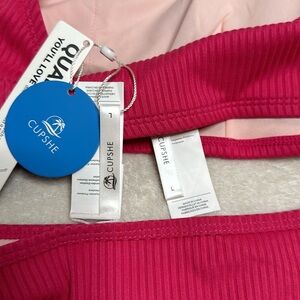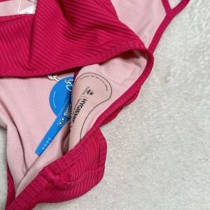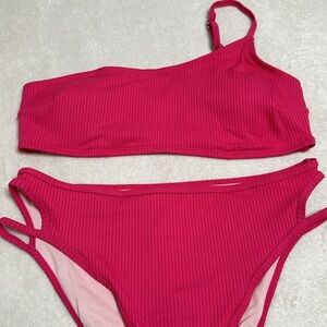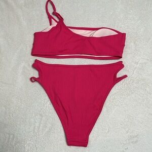 NWT! One shoulder BRIGHT pink bikini with cute cutout bottoms size Large.