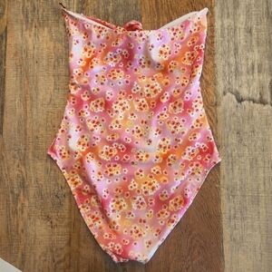 An updated take on the classic one-piece, this swimsuit features a cutout tie front.