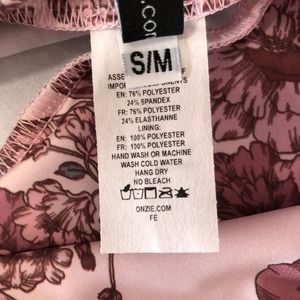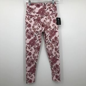 New Onzie Pink Floral Leggings Womens Small Medium High Rise Blush