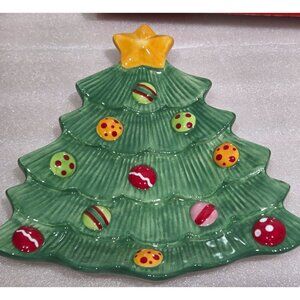 New Open Box - no chips/cracks. There is a spot that seems to have been missed with the green paint while manufactured. (see last pic). not a chip - all smooth. Snack plate measures approx 7-1/2 high x 7-1/2" at widest point across. Smoke free.