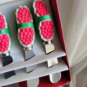 New Open Box Vintage 2 Sets of Butters Spreaders Christmas/Watermelon Resin 90's