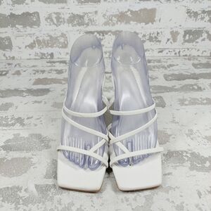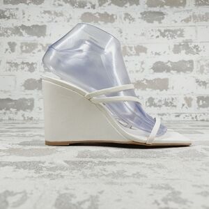New Open Edit Eryn White Faux Leather Wedge Sandals C967