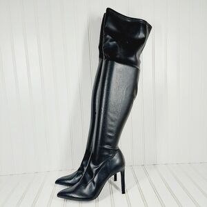 New Open Edit Kami Pointed Toe Over the Knee Black Stilletto Heel Boot K399