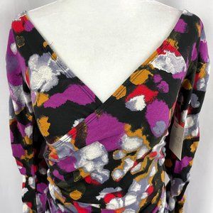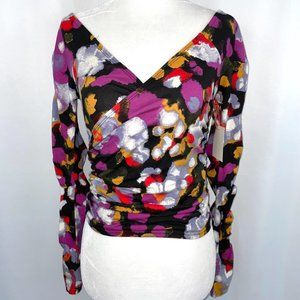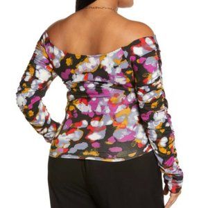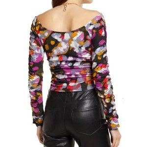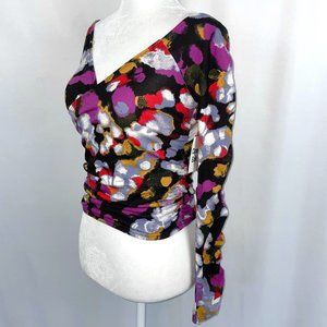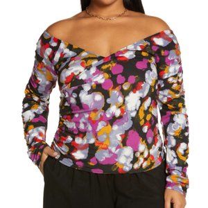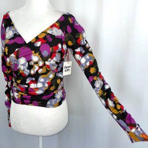 New Open Edit Off Shoulder Long Sleeve Ruched Faux Wrap Top Multi Size Small