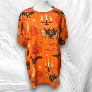 New Orange Halloween Print Women’s T-Shirt Festive Short Sleeve Top Size: XL
