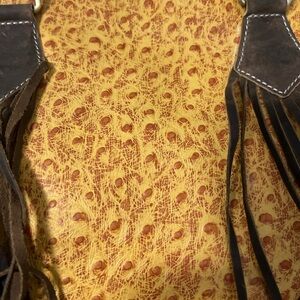 New Orange Western Genuine Ostrich Embossed Leather Rustic bag fringe crossbody