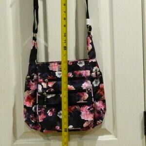 Organizzi Crossbody Day Bag Floral Print. Many zipper compartments. New still has the paper on the handle. The deluxe signature bag with floral design. never been used.