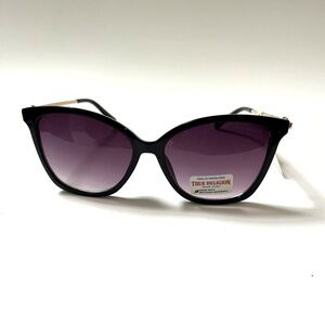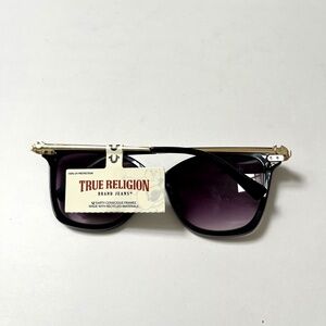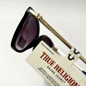 New Original TRUE RELIGION Cat Eye Sunglasses Acetate Black Metal Logo Gold XXX