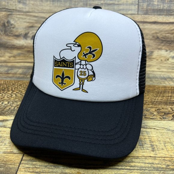 New Orleans Saints Mens Trucker Hat Black Snapback 1970s Logo Football Cap