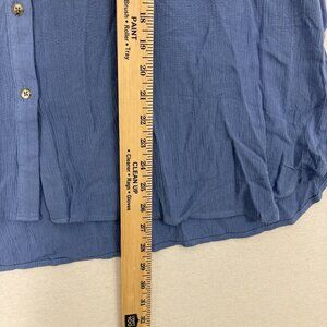 New Orvis Blue V Neck Gauzy Cotton Short Sleeve Relaxed Button Down XL