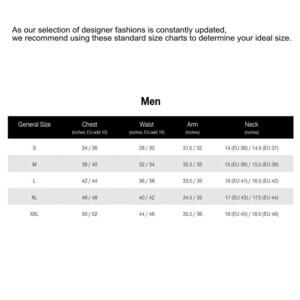 Chest (in): S = 43 | M = 45 | L = 48 | XL = 51 | XXL = 55 | 3XL = 61 | LT = 48 | XLT = 51