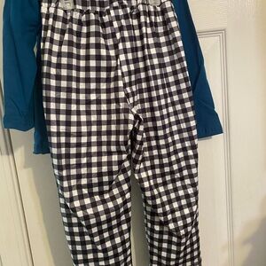 Matching elastic waist black and white gingham pants