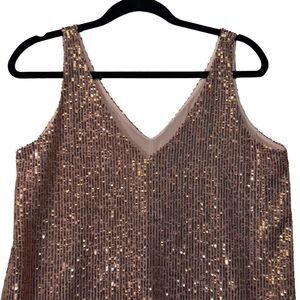 Small oversized fit Pink sequin top with a v front and back From Ann Taylor Loft
