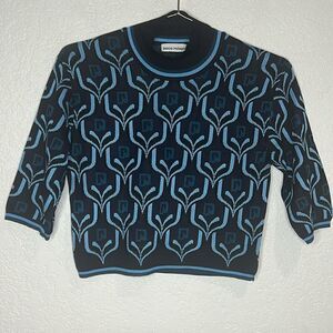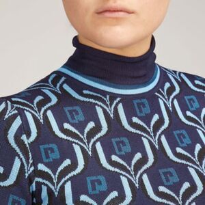 New PACO RABANNE Cropped Turtleneck Knit Top in Blue Jacquard Logo Large