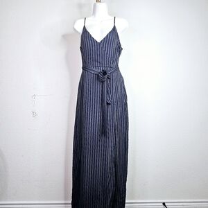 New PAIGE Regina Stripe Maxi Wrap Dress in Rich Navy Small